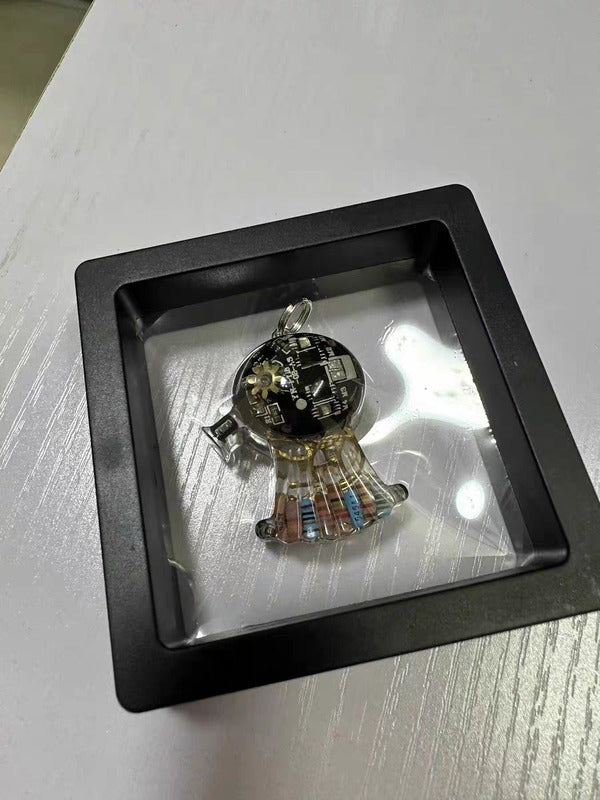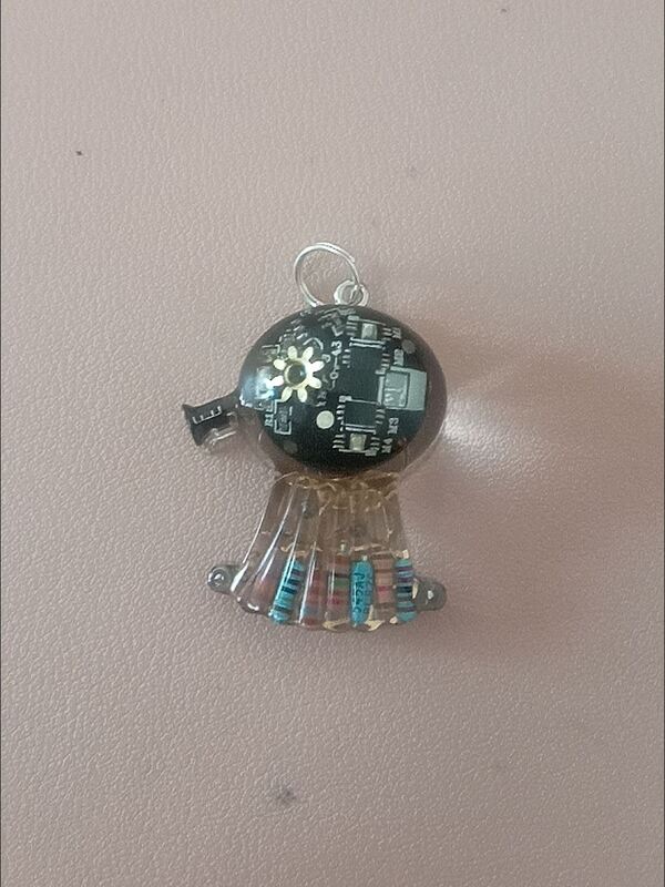 But more than function, resin gives the pendant its identity: it transforms fragile waste into a solid, wearable form — like turning scattered thoughts into a preserved memory. It elevates the rawness of tech trash into something refined and permanent.